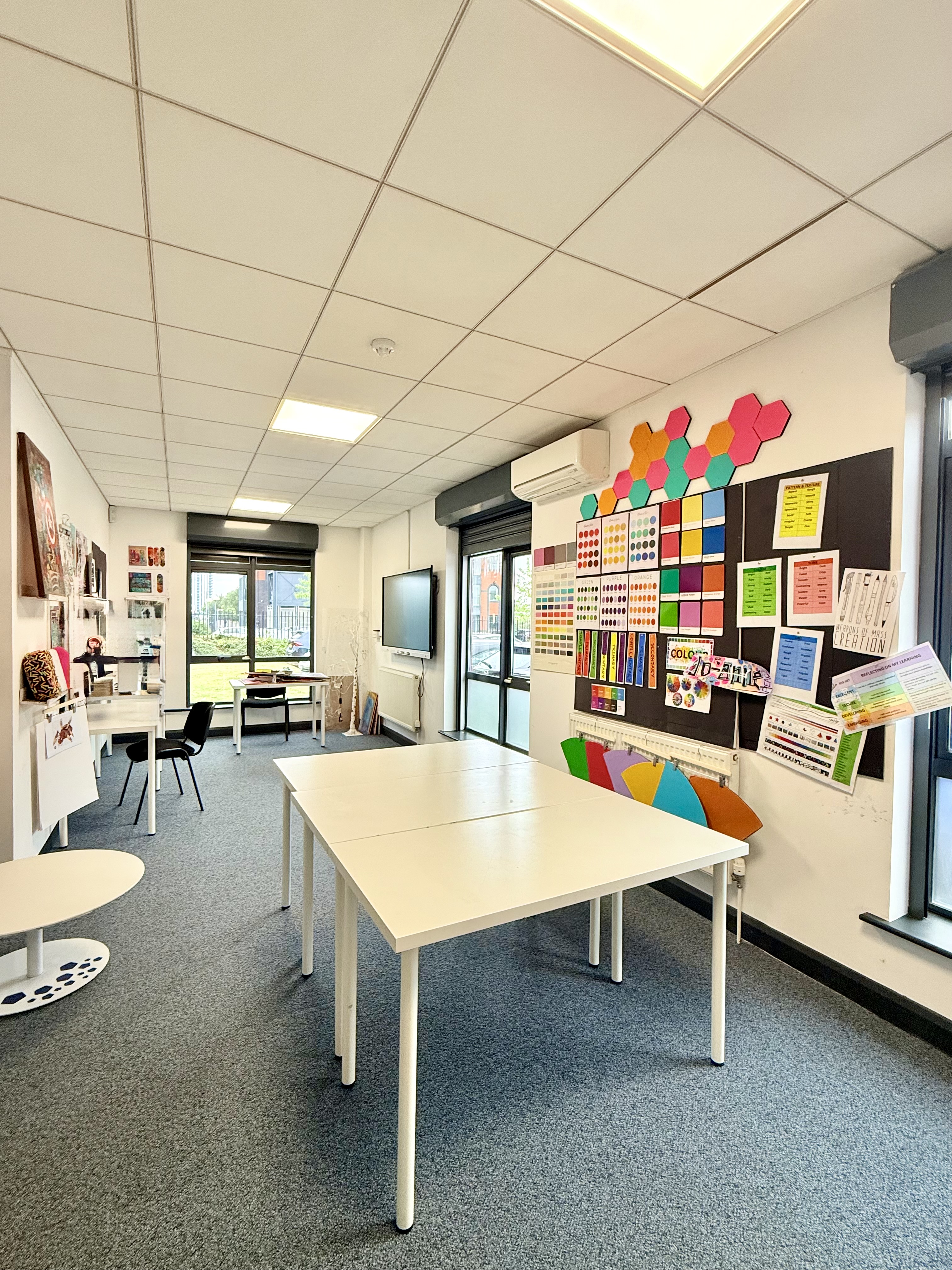 We’ve created an engaging, subject-specific learning environment that caters to a range of interests and academic pathways. Our classrooms are thoughtfully set up to provide focused teaching in Maths, English, Health & Fitness, and Art & Design, ensuring that each subject is delivered in a space tailored to its unique learning style. Beyond the classroom, our upstairs area provides a dedicated space to unwind, socialise, and take part in enrichment activities. With a dartboard, pool tables and reading corner, we encourage our young people to balance structured learning with meaningful downtime.